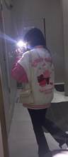 ¡Es tan lindo! He ganado un poco de peso, así que pedí la talla 2XL, la etiqueta dice XXL, así que si eres exigente con el ajuste de tu ropa, ten en cuenta que la 2XL en realidad es XXL. ¡Por lo demás es perfecto! Sin olor, tela bonita, todo está bordado, la cremallera es un poco quisquillosa, pero no lo suficiente como para ser un problema. ¡Es una gran chaqueta para la primavera!