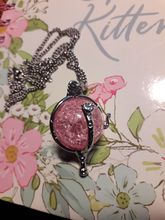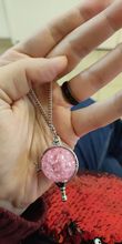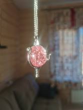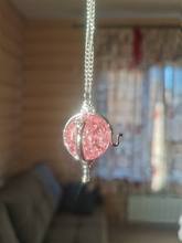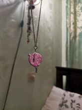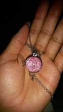Pedí 2 collares, rosa y azul. Son muy hermosos, iguales y ordenados. El tamaño es excelente-3,5 cm. Si, por ejemplo, comparamos estos colgantes con collares de Goldberry, resulta que son más pequeños en tamaño que el SK estándar de Goldberry, pero más mini versión. Es decir, el Centro de oro directo. El marco de los colgantes es bueno, absolutamente uniforme. Las esferas son hermosas y brillantes, con el efecto de vidrio batido dentro. El tamaño corresponde a las curvas y se fija dentro de ellas. Estoy muy contento