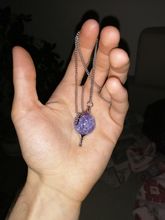 ¡Es perfecto! Temíamos que fuera plástico completo, pero en realidad es metal alrededor de la bola de acrílico (plástico). La bola no se mueve, está pegada. El tamaño es perfecto para cosplay o uso diario-no es demasiado pesado o demasiado grande. Colgante muy agradable. No se comunicaron con el vendedor, envío rápido.