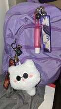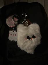 ¡Es tan lindo! El material es muy suave, y la parte del llavero es segura y sólida. Cuando se enganchó en la puerta no se cayó.