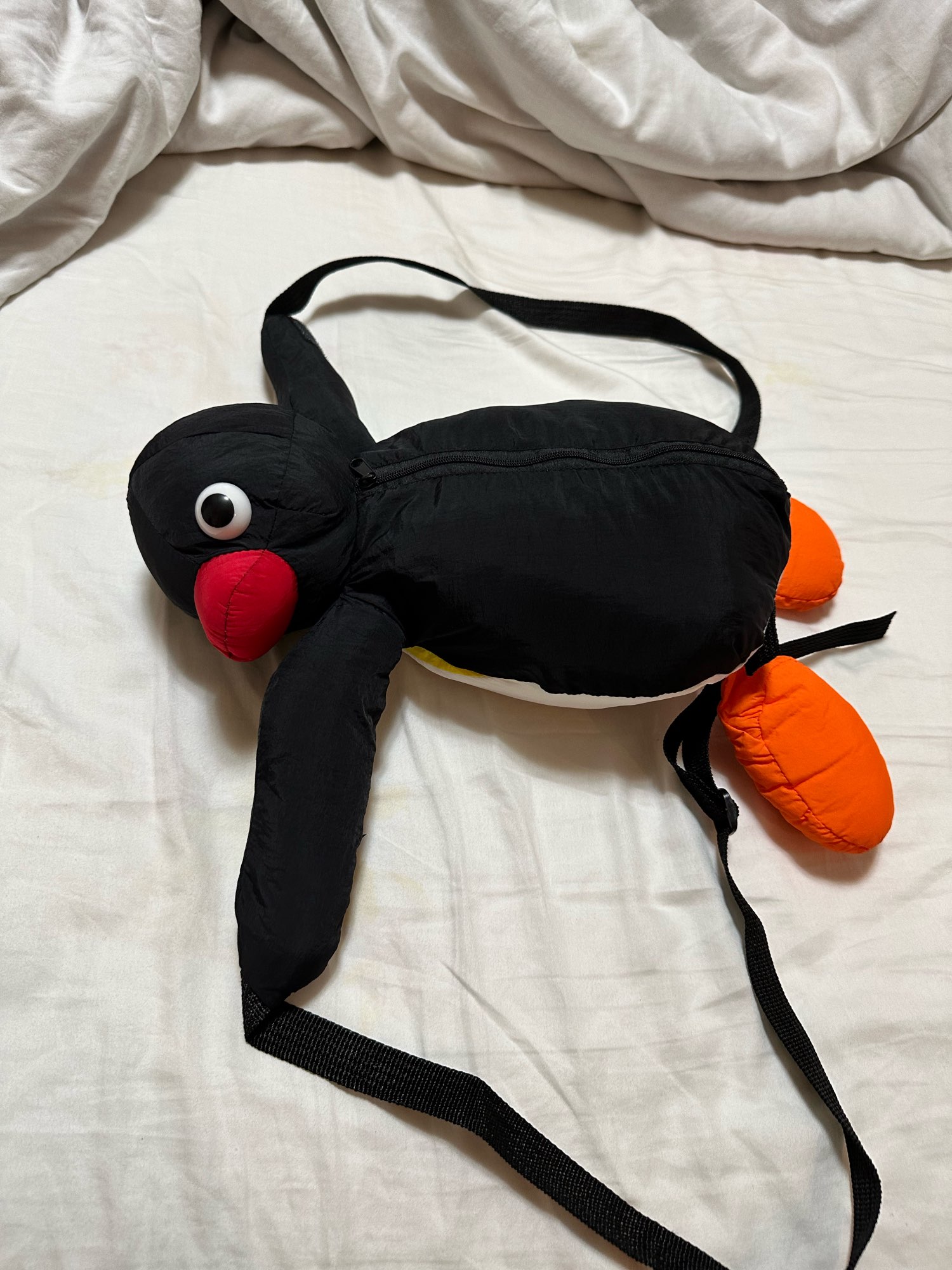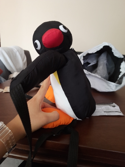 Me encantó, la mochila es muy linda, la cara de pingu es tierna, justo como en la imagen el material es bueno, aunque el cierre se siente delicado, la forma de la mochila también es buena, no esta deformada, no es muy espaciosa, pero un celular y un monedero si caben, me encanto, el vendedor la envió rápido, sin problema con él envío, a México llego en 9 días